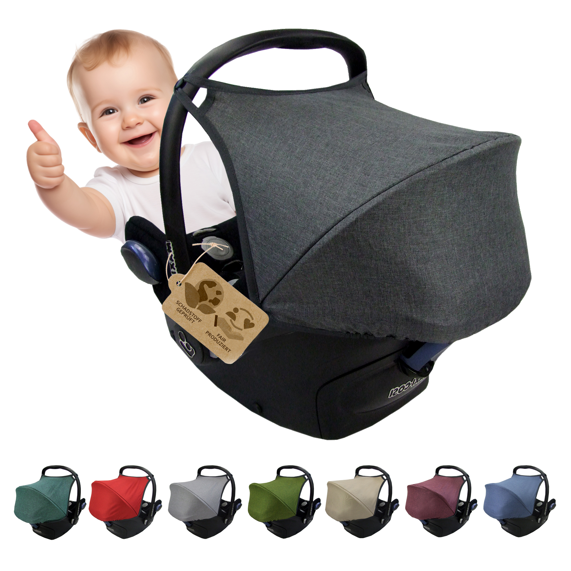 Das Sonnenverdeck für die Babyschale von Maxi Cosi, ist nur für das Modell CABRIO-FIX passgenau angefertigt. Das Material ist hochwertig, schadstoffgeprüft und zudem wasser- und schmutzabweisend. Der Bezug passt auf alle Baujahre der Modellreihe Cabrio-Fix.