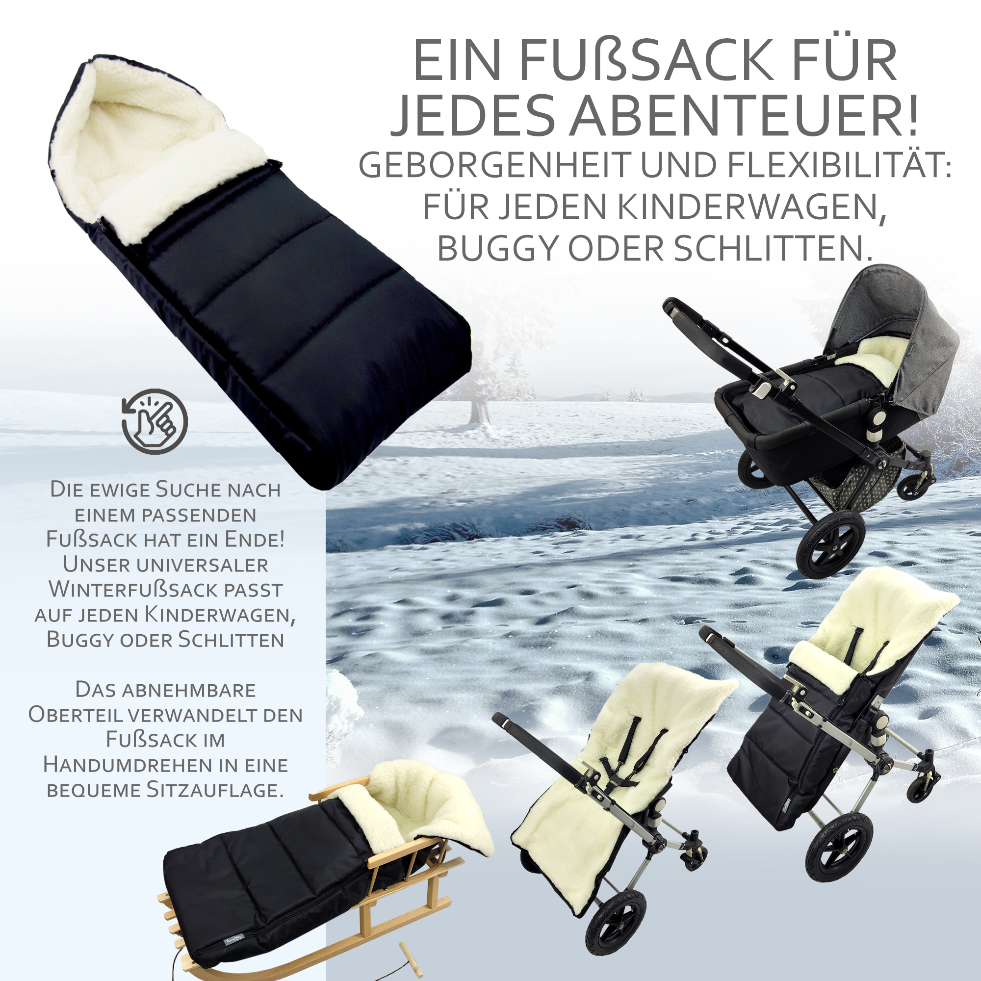 BAMBINIWELT Winterfußsack für Kinderwagen, Buggy, Schlitten, 108cm, Wolle