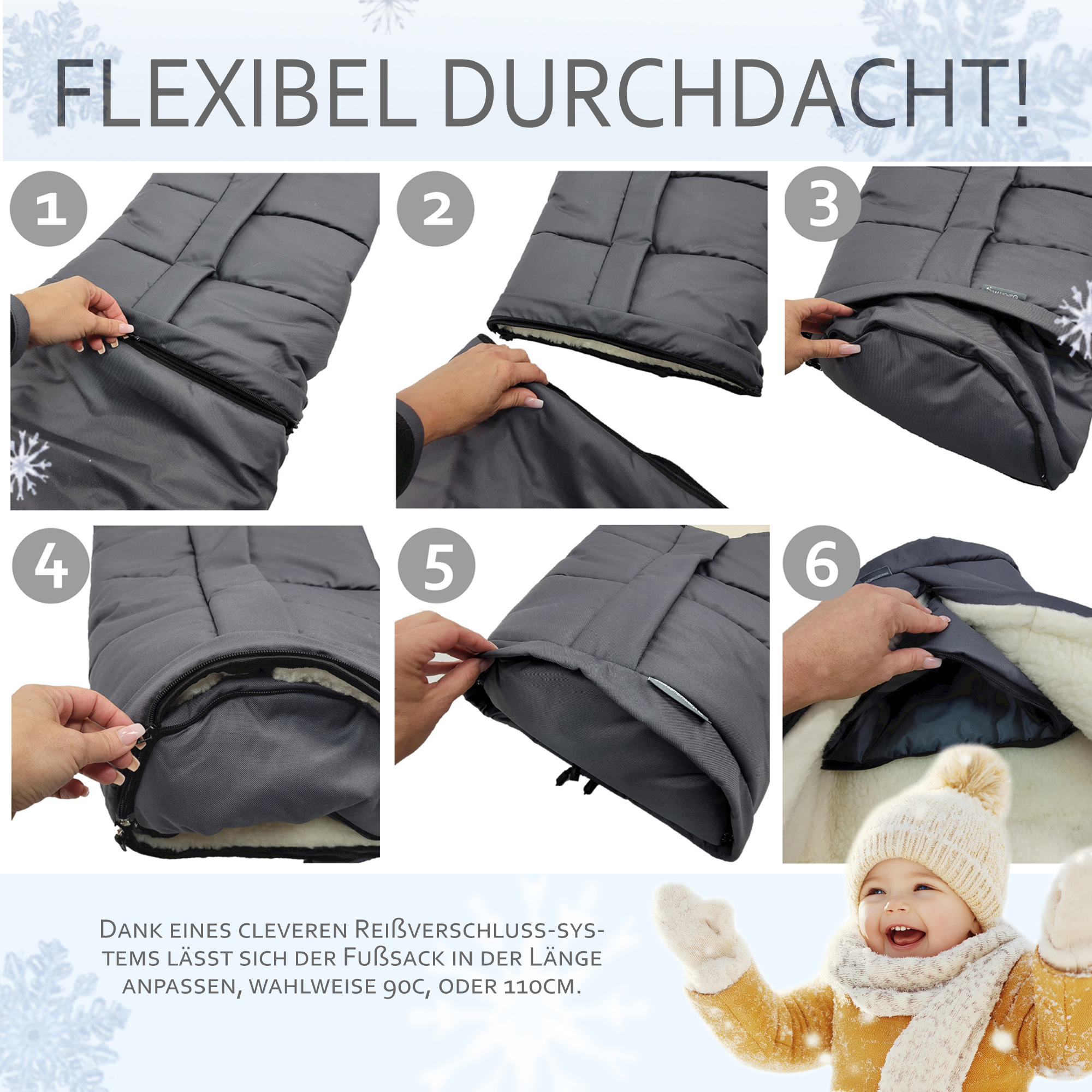 - Der Winterfußsack der mit wächst! Länge: 110 cm, (kürzbar auf 90 cm)